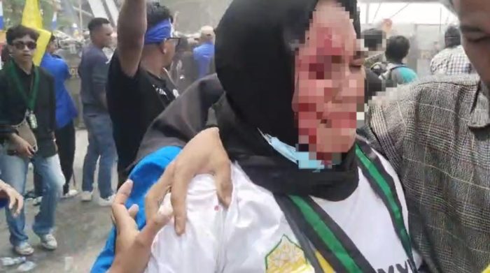 Ketua Korps HMI-Wati (KOHATI) Badan Koordinasi (BADKO) HMI Maluku Utara, Aisun Salim, menjadi korban pemukulan aparat kepolisian saat massa menyuarakan aspirasi di depan kantor pemerintahan daerah.