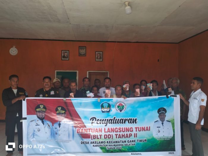 Pemerintah Desa (Pemdes) Akelamo Fida, Kecamatan Gane Timur, Halmahera Selatan, menyalurkan Bantuan Langsung Tunai Dana Desa (BLT DD) tahap II Tahun Anggaran 2025. Penyaluran bantuan ini berlangsung dengan lancar dan tepat sasaran.