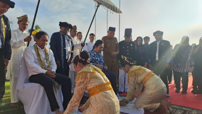 Ritual penyambutan ini menjadi tradisi kehormatan bagi tamu negara yang berkunjung ke kedaton, menandai penghormatan sekaligus doa keselamatan. Seusai prosesi adat, rombongan diajak berkeliling area kedaton.