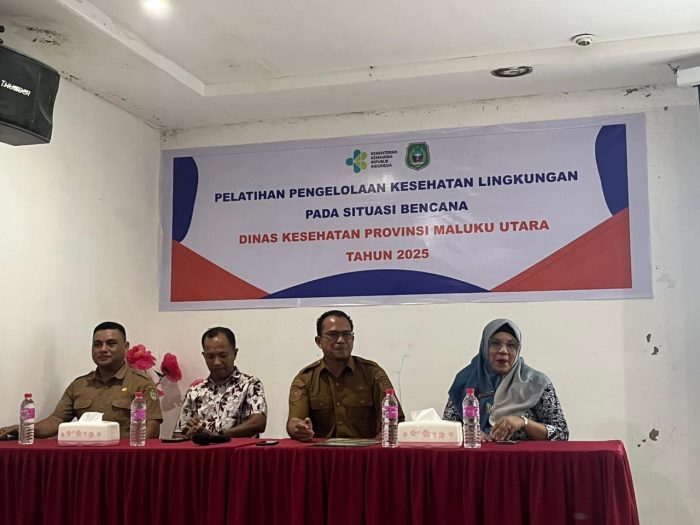 Dinas Kesehatan (Dinkes) Provinsi Maluku Utara melatih puluhan tenaga kesehatan lingkungan dari berbagai daerah di Maluku Utara dalam Pelatihan Pengelolaan Kesehatan Lingkungan pada Situasi Bencana Tahun 2025.