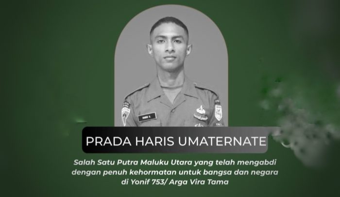 Pemerintah Provinsi (Pemprov) Maluku Utara menyampaikan belasungkawa yang mendalam atas gugurnya Prada Haris Umaternate, salah satu prajurit terbaik asal Maluku Utara, saat menjalankan tugas menjaga kedaulatan Negara Kesatuan Republik Indonesia (NKRI) di perbatasan antara Republik Indonesia dan Papua Nugini (PNG).