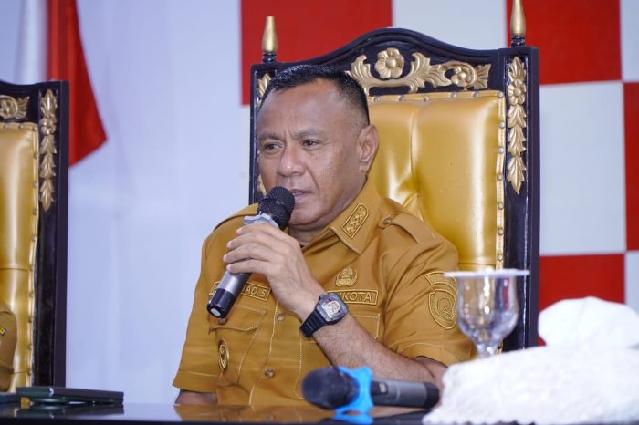 Sekretaris Daerah Ismail Dukomalamo menjelaskan bahwa rapat bertujuan untuk memberikan informasi kepada seluruh pimpinan OPD, Camat, dan Lurah mengenai penurunan Dana Transfer Tahun Anggaran 2026 yang diperkirakan mencapai sekitar Rp300 miliar.