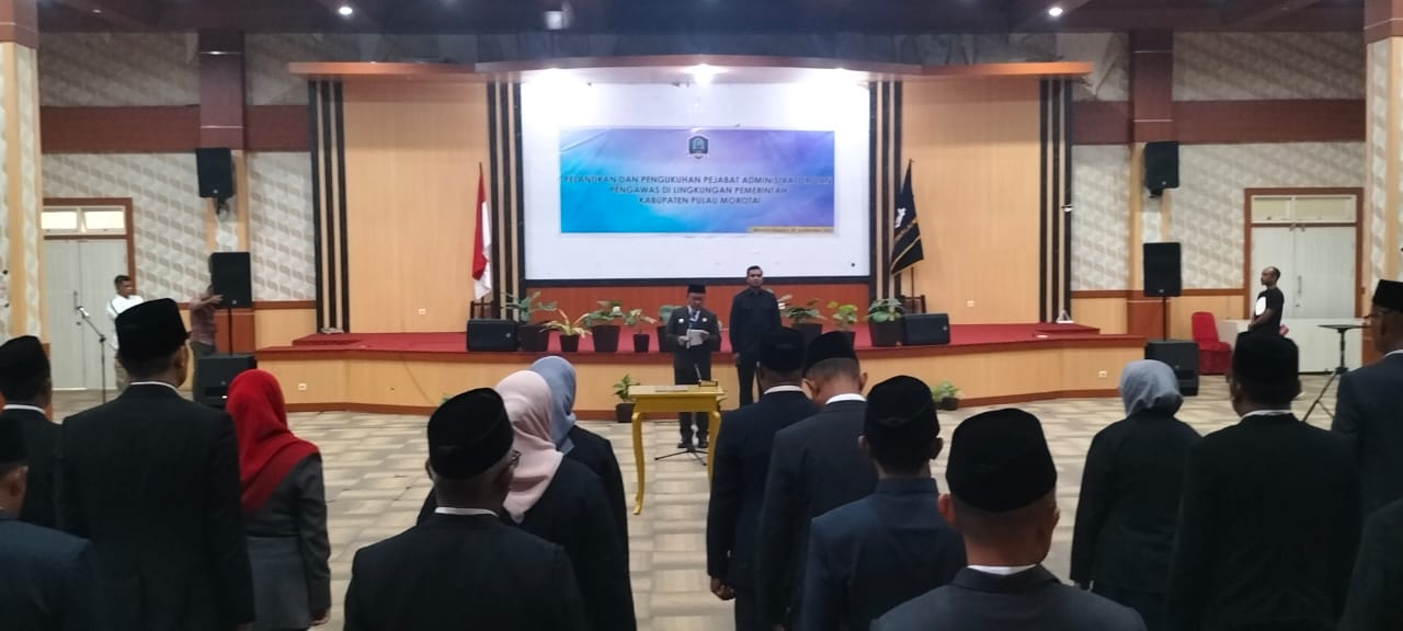 Bupati Kabupaten Pulau Morotai, Rusli Sibua, resmi melantik 27 pejabat eselon III dan IV di Aula Kantor Bupati pada Senin, 29 September 2025.