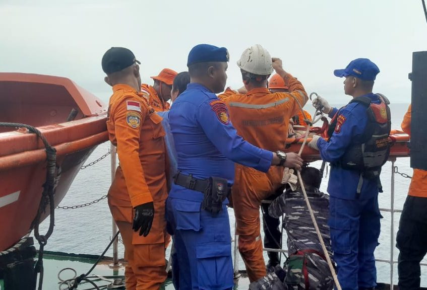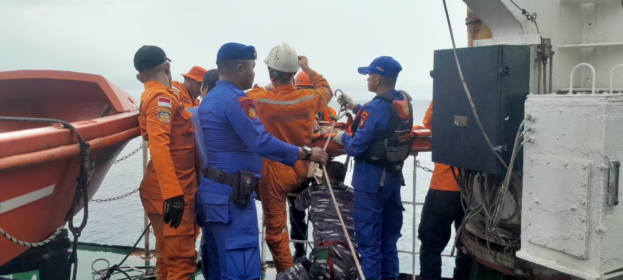 Pukul 15.50 WIT, korban berhasil dievakuasi dari atas kapal menuju Pelabuhan Daruba menggunakan RIB Trimaran. Setibanya di pelabuhan pada pukul 16.10 WIT, korban langsung dibawa ke RSUD Soekarno Morotai untuk mendapat penanganan lanjutan.