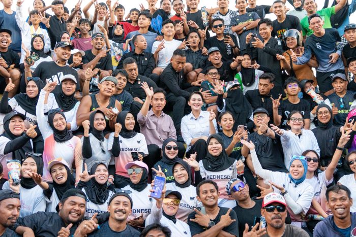 Dalam suasana penuh keakraban, Gibran dan Sherly tampak duduk di tengah peserta, berfoto bersama, dan bahkan membagikan kaos eksklusif bertuliskan Running Wednesday kepada sejumlah anggota komunitas. Aksi spontan itu disambut meriah, banyak peserta berebut ingin mendapat kaos langsung dari tangan Wapres.
