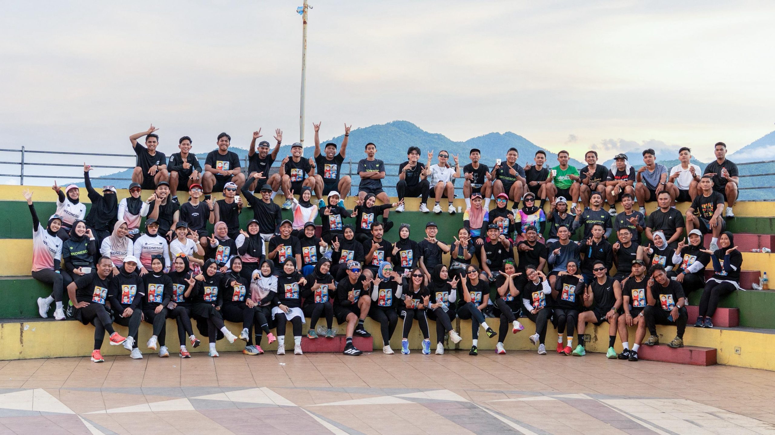 Dalam suasana penuh keakraban, Gibran dan Sherly tampak duduk di tengah peserta, berfoto bersama, dan bahkan membagikan kaos eksklusif bertuliskan Running Wednesday kepada sejumlah anggota komunitas. Aksi spontan itu disambut meriah, banyak peserta berebut ingin mendapat kaos langsung dari tangan Wapres.