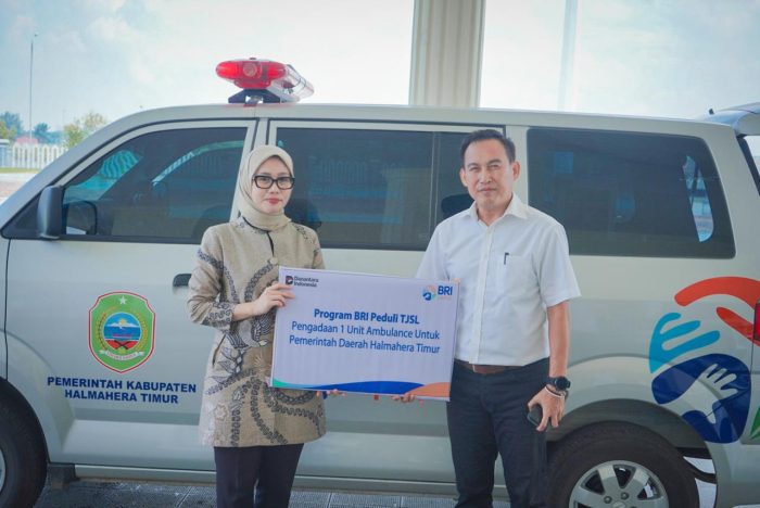 Bank Rakyat Indonesia (BRI) Cabang Soasio mendukung peningkatan layanan kesehatan di Kabupaten Halmahera Timur dengan menyalurkan bantuan satu unit mobil ambulans melalui program Tanggung Jawab Sosial dan Lingkungan (TJSL) atau Corporate Social Responsibility (CSR).