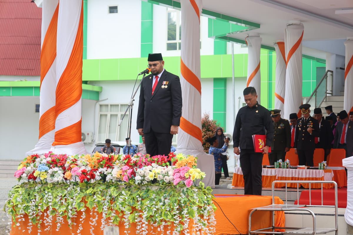 Bupati Halmahera Selatan, Hasan Ali Bassam Kasuba, menjadi inspektur upacara (Irup) pada peringatan Hari Sumpah Pemuda ke-97 Tahun 2025, yang digelar di halaman kantor bupati, Selasa, 28 Oktober 2025.