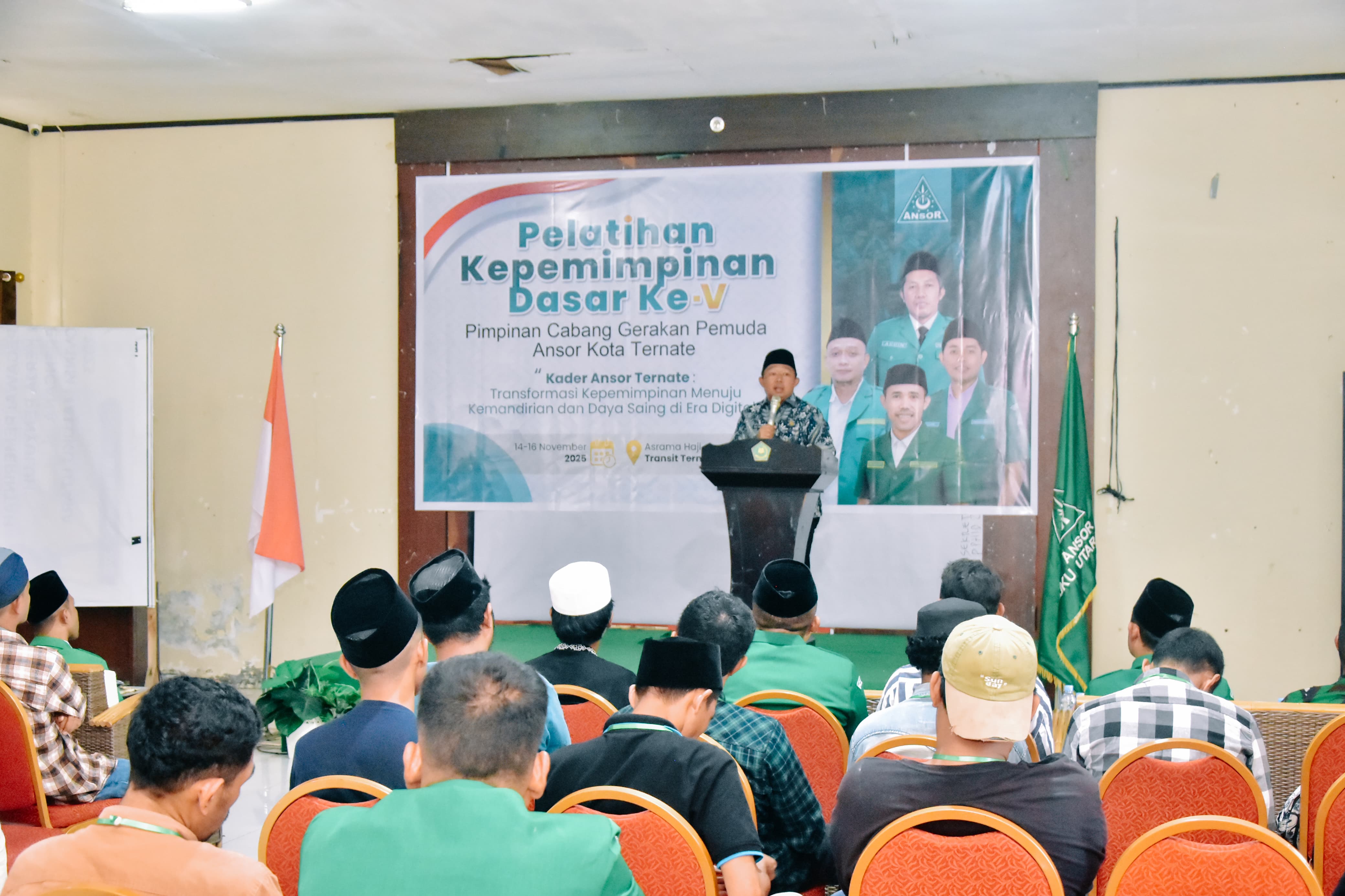 Kegiatan yang bertemakan “Kader Ansor Ternate: Transformasi Kepemimpinan Menuju Kemandirian dan Daya Saing di Era Digital” ini berlangsung di Asrama Haji Transit Ternate pada Jumat, 14 November 2025.