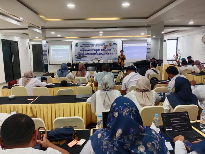 Melalui Bidang Jasa Konstruksi, PUPR Malut menggelar pelatihan eksklusif penyusunan RAB-HPS dan Bimbingan Teknis (Bimtek) Pengendalian Kontrak di Safirna Hotel, Ternate, selama dua hari, pada 19–20 November 2025.