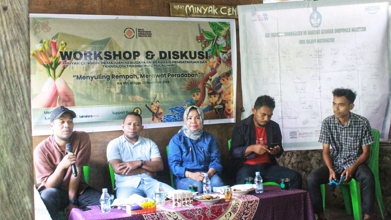 Tradisi penyulingan minyak cengkih kembali diperkuat melalui Workshop dan Diskusi “Minyak Cengkih: Pemajuan Kebudayaan Berbasis Pengetahuan dan Teknologi Tradisional Pulau Hiri” yang digelar, Minggu, 23 November 2025.