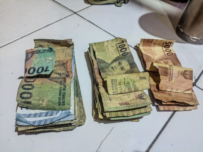 “Setiap pembeli yang datang, uang nominal kecil seperti Rp2.000, Rp5.000, Rp10.000, sampai Rp20.000 sering sekali warnanya pucat, lembek, kadang nomor serinya hilang, dan banyak yang sobek,” ungkapnya.