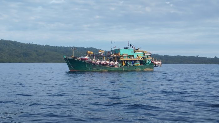 Kapal tangkap ikan asal Bitung, Sulawesi Utara di perairan Morotai. Foto : Maulud