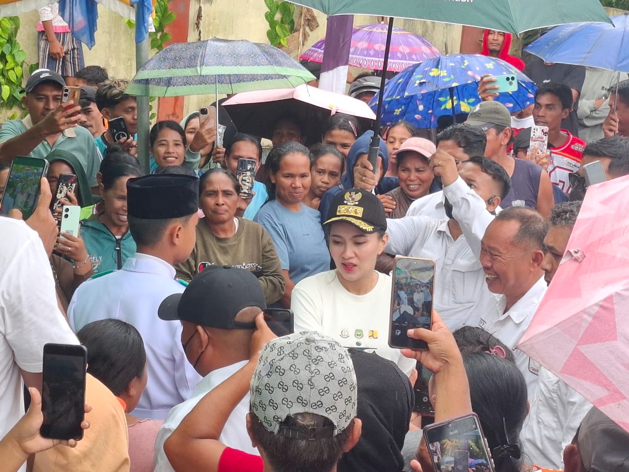 Gubernur Maluku Utara, Sherly Laos, melakukan kunjungan kerja di Kabupaten Halmahera Utara dan menggelar program pangan murah, salah satunya di Desa Pediwang, Kecamatan Kao Utara, Rabu, 10 Desember 2025.