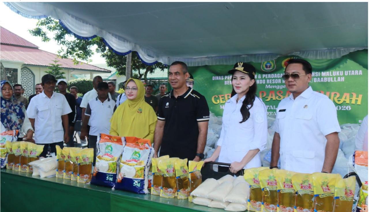 Dinas Perindustrian dan Perdagangan (Disperindag) Provinsi Maluku Utara menegaskan komitmennya menjaga keterjangkauan harga kebutuhan pokok melalui kegiatan pasar murah yang digelar bersama Korem 152/Baabullah di Lapangan Makorem 152/Baabullah, pada 17 Desember 2025.