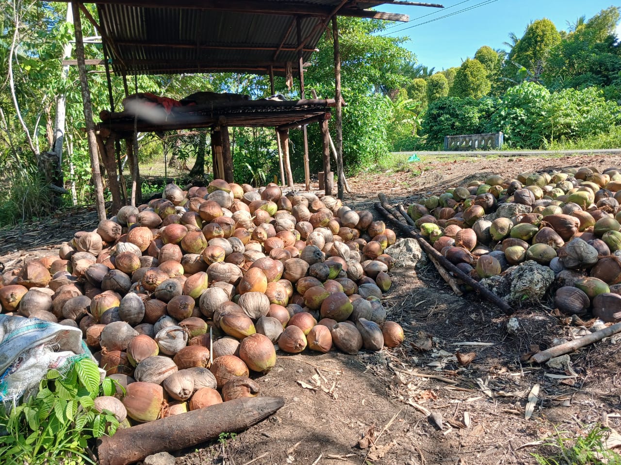 Salah satu Penampungan kelapa buah di Desa Wayabula, Kecamatan Morotai Selatan Barat, Pulau Morota. Foto: Ris