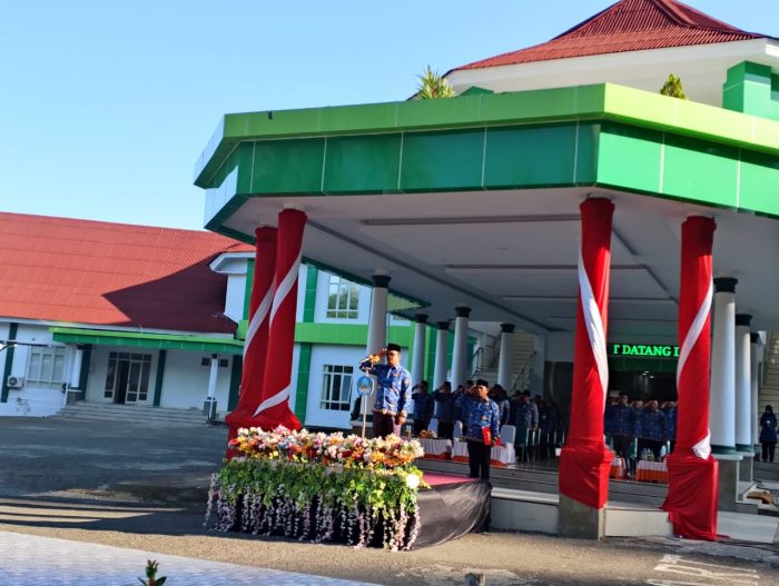 Pelaksana Tugas (Plt) Sekretaris Daerah Halmahera Selatan, Abdillah Kamarullah, memimpin apel pagi perdana setelah diangkat oleh Bupati.