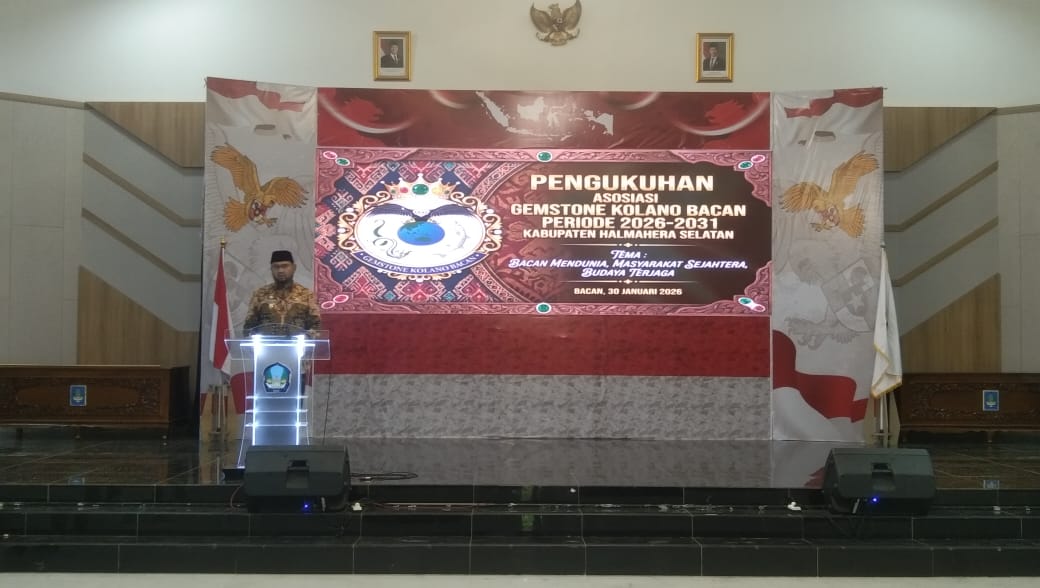 Hal tersebut disampaikannya saat pengukuhan Asosiasi Gemstone Kolano Bacan periode 2026–2031 di Aula Kantor Bupati Halmahera Selatan, Jumat, 30 Januari 2026.