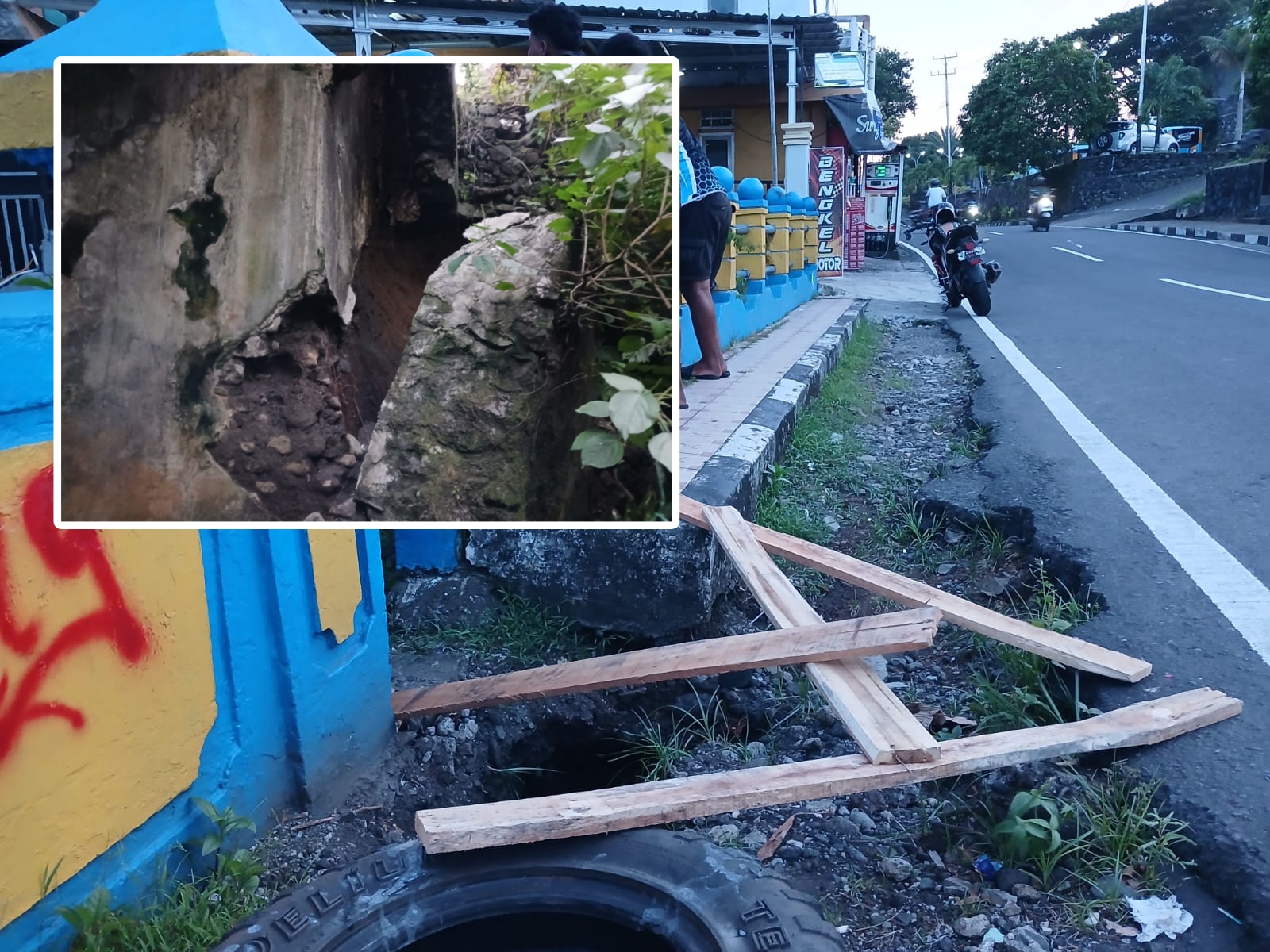 “Kami sudah berusaha memberi tanda dengan menaruh kayu di bagian longsor agar pengendara waspada,” tambah Fazrul.