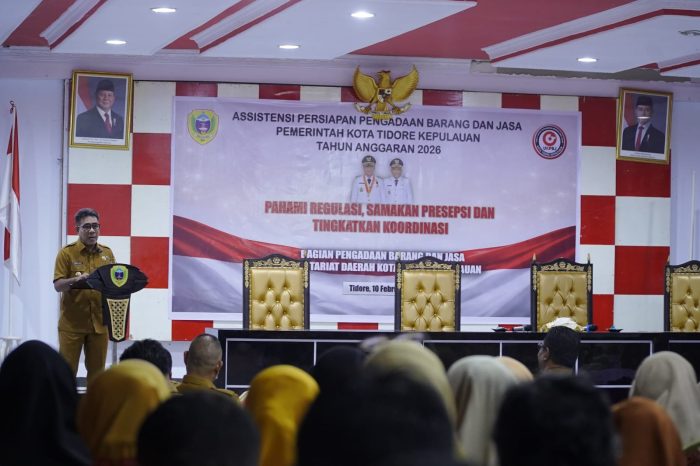 Kegiatan asistensi resmi dibuka oleh Wakil Wali Kota Tidore Kepulauan, Ahmad Laiman, di Aula Sultan Nuku, Kantor Wali Kota, Selasa, 10 Februari 2026. Dalam sambutannya, Ahmad Laiman menegaskan pentingnya pengadaan barang dan jasa yang tidak sekadar mengejar harga murah, tapi juga berkualitas dan berdampak positif bagi perekonomian lokal.