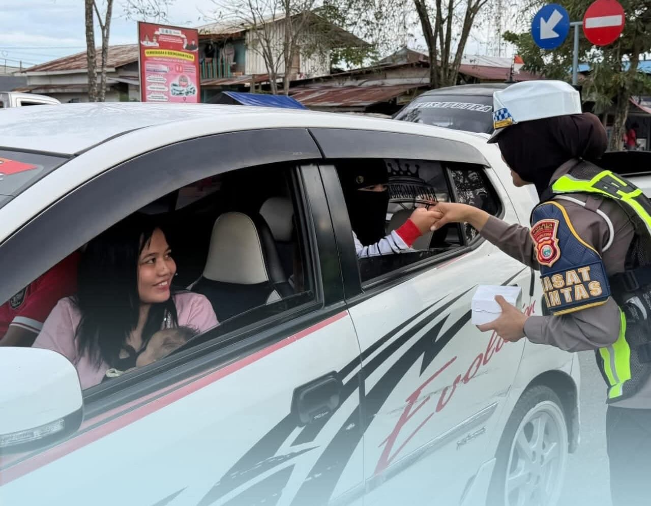 Ramadan, Satlantas Polres Halmahera Tengah Sapa Pengendara dengan Takjil