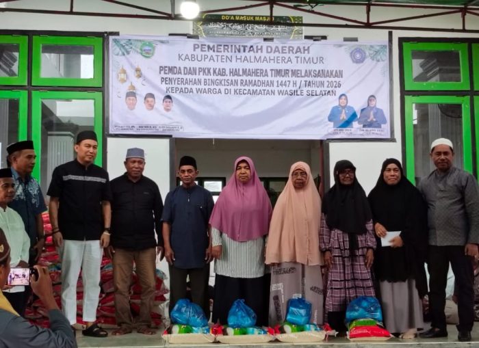 Bupati Ubaid Yakub bersama Sekretaris Daerah Kabupaten Halmahera Timur, Ricky Chairul Richfat, memimpin langs kegiatan Safari Ramadhan Pemerintah Kabupaten Halmahera Timur di Kecamatan Wasile Selatan, Minggu 22 Februari 2026.