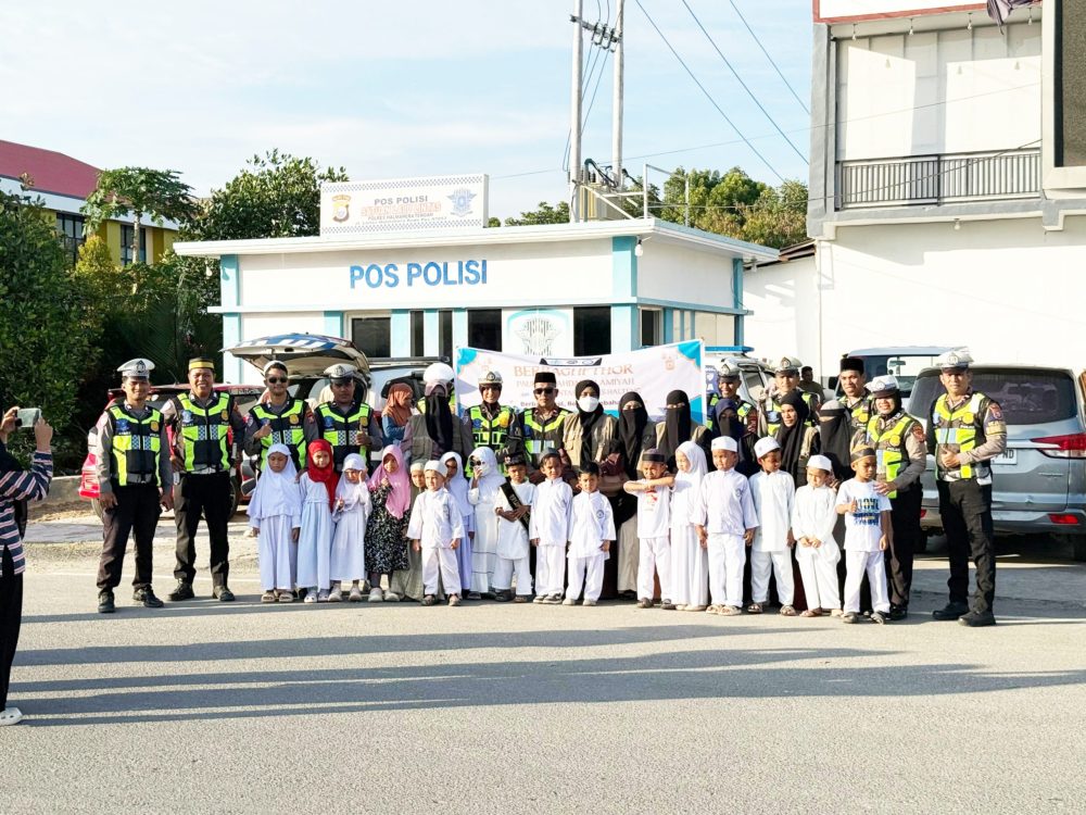 Sejumlah personel Satlantas tampak membagikan takjil kepada pengendara roda dua dan roda empat yang melintas. Anak-anak PAUD IT Wahdah Islamiyah turut ambil bagian didampingi para guru, sehingga suasana berlangsung tertib dan penuh keceriaan.