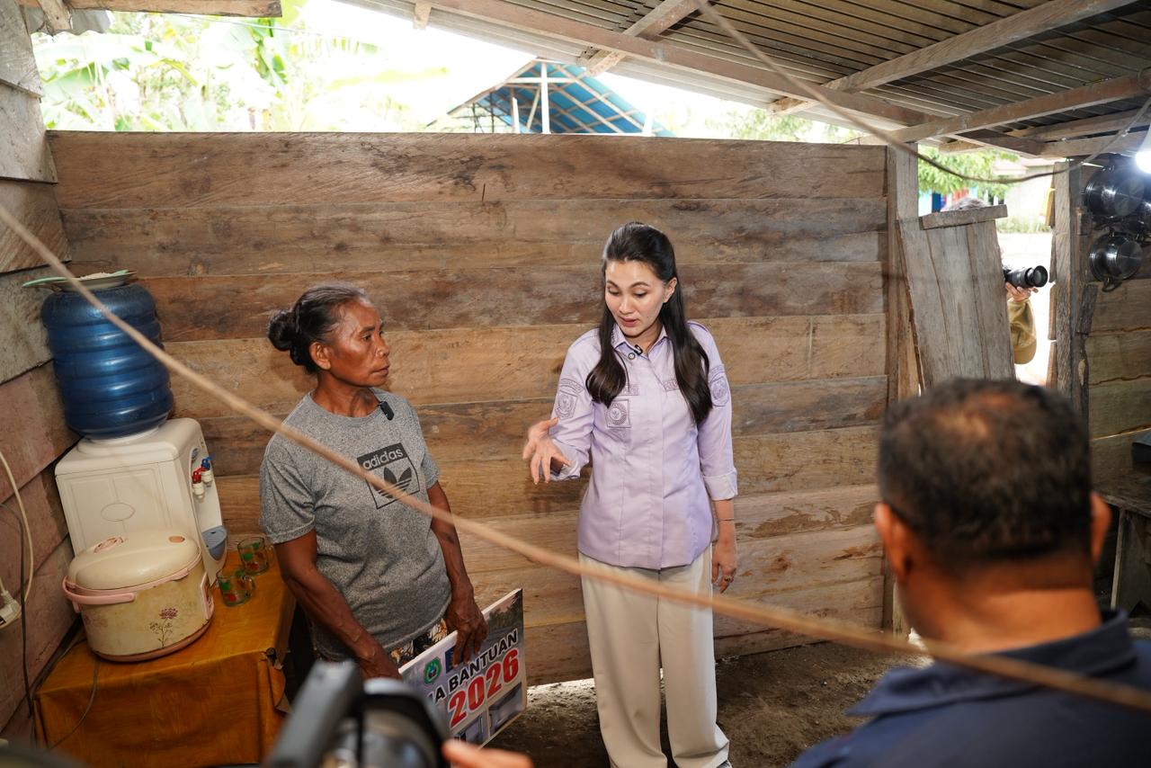 Gubernur Sherly langsung meninjau penerima RTLH di Desa Gulapapo, Halmahera Timur, Kamis, 5 Maret 2026. Kehadiran gubernur disambut hangat warga, terutama pasangan Erwin Senangua (32) dan Sintya (26), yang tak kuasa menahan haru melihat rumah baru mereka.