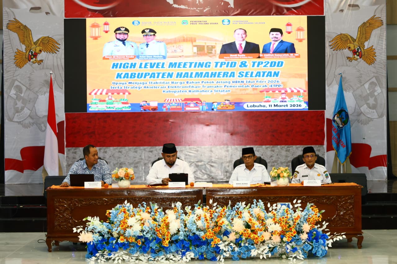 Pemerintah Kabupaten Halmahera Selatan bersama Bank Indonesia menggelar High Level Meeting (HLM) Tim Pengendalian Inflasi Daerah (TPID) dan Tim Percepatan dan Perluasan Digitalisasi Daerah (TP2DD) guna membahas strategi pengendalian inflasi menjelang Hari Besar Keagamaan Nasional (HBKN) Idulfitri 2026.