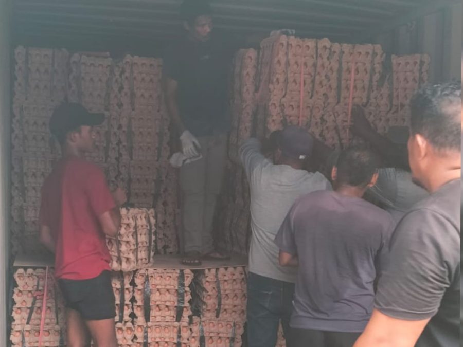 Sebanyak sepuluh kontainer telur masuk ke Kota Ternate pada Jumat, 13 Maret 2026 untuk memperkuat pasokan menjelang Hari Raya Idulfitri.