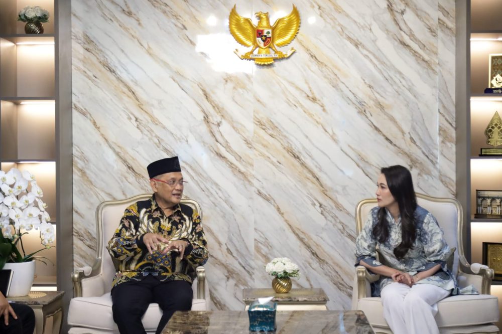 Menteri Haji dan Umrah (Menhaj) Republik Indonesia, Mochamad Irfan Yusuf, menerima kunjungan audiensi Gubernur Maluku Utara, Sherly Laos, di Kantor Kementerian Haji dan Umrah RI, Jakarta. Foto: Ist