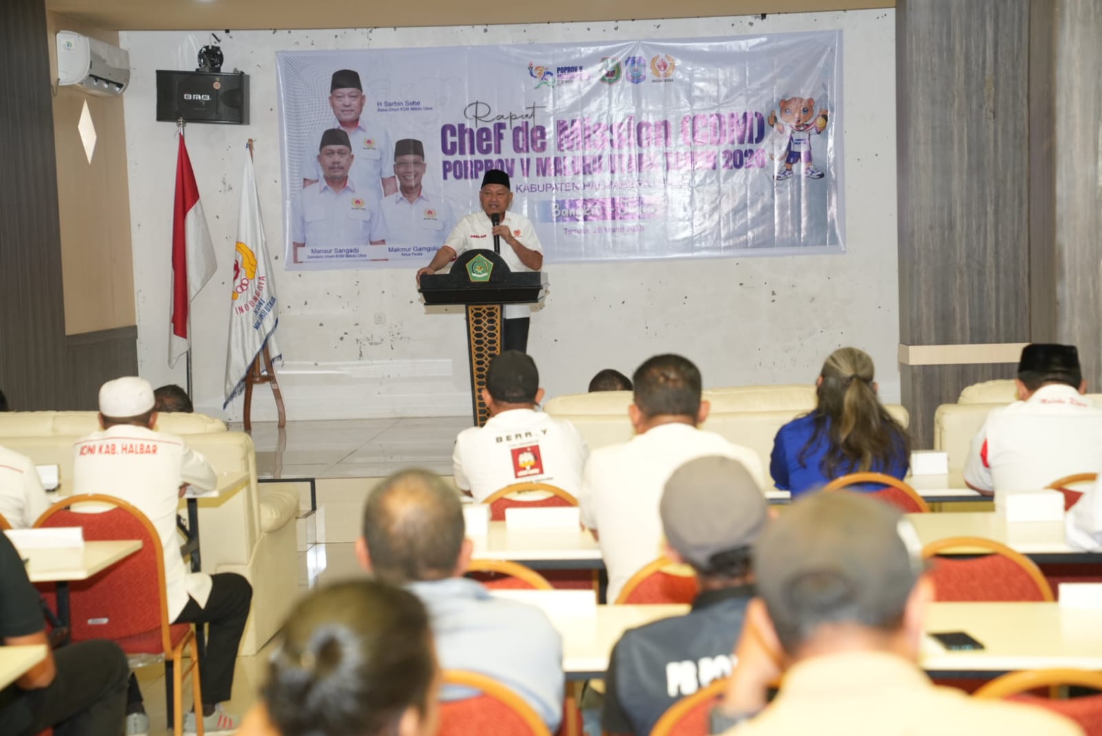 Hal itu disampaikan Sarbin saat membuka kegiatan Chef de Mission (CdM) Meeting Porprov Maluku Utara 2026 yang berlangsung di Asrama Haji, Sabtu, 28 Maret 2026.