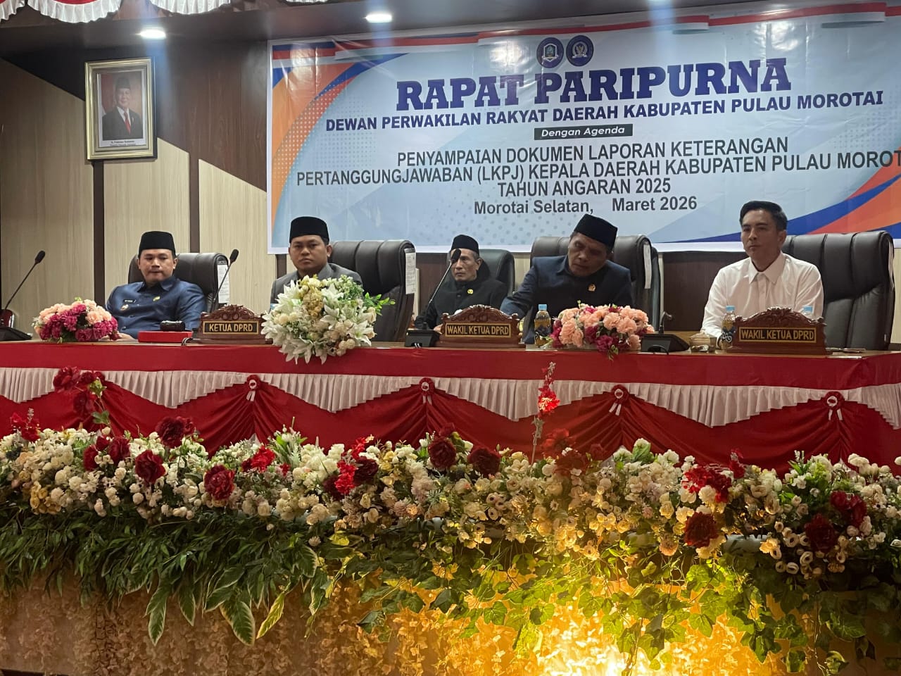 Dewan Perwakilan Rakyat Daerah (DPRD) Kabupaten Pulau Morotai menggelar rapat paripurna penyampaian Laporan Keterangan Pertanggungjawaban (LKPJ) Kepala Daerah Tahun Anggaran 2025, Selasa, 31 Maret 2026.