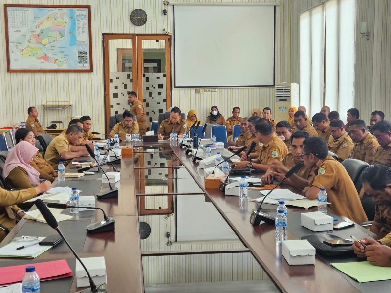 Bupati Halmahera Timur, Ubaid Yakib saat memimpin rapat bersama seluruh pimpinan OPD. Foto: Humas Pemda Halmahera Timur