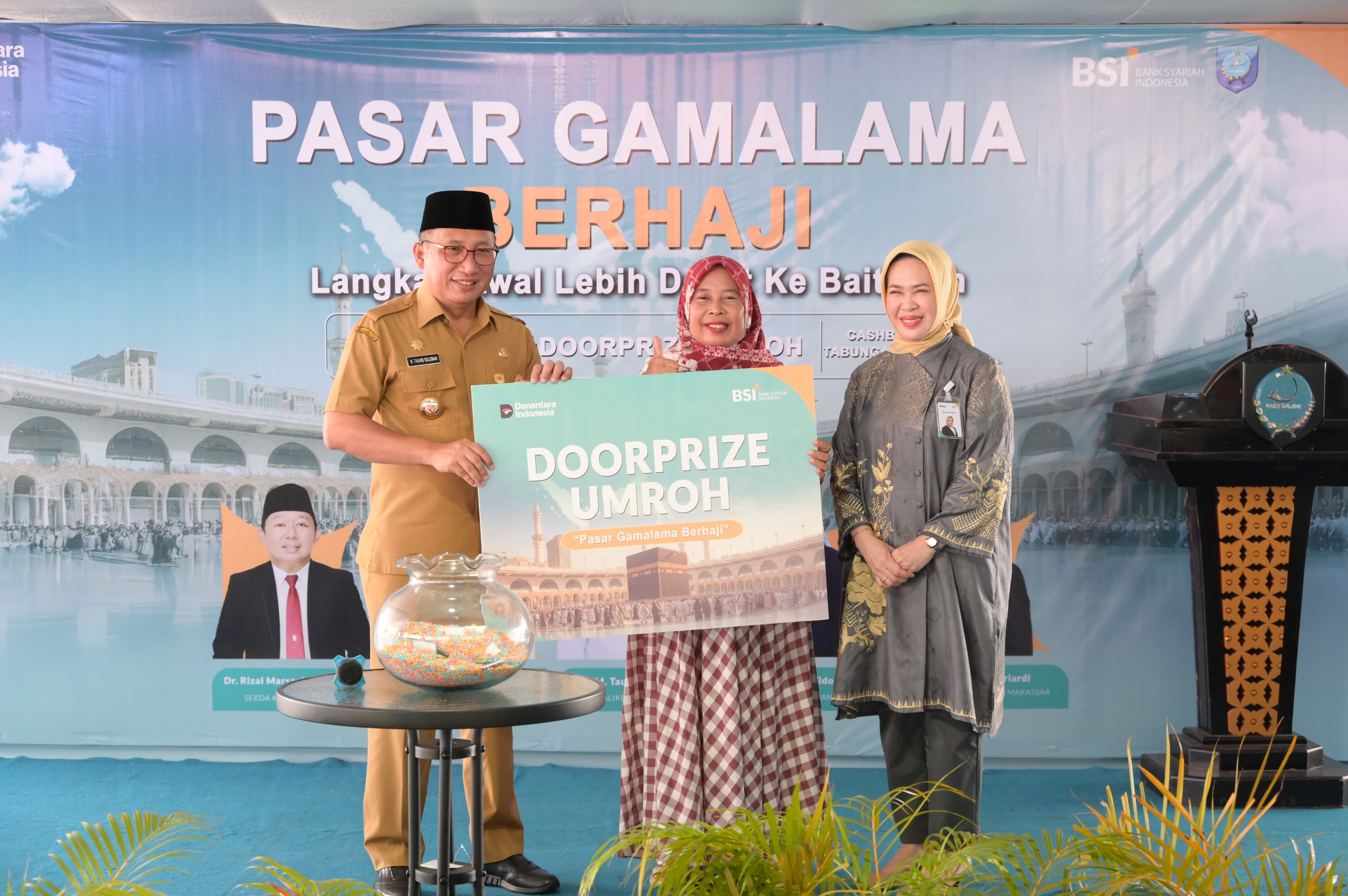 Kegiatan Pasar Gamalama Berhaji mengangkat tema “Langkah Awal Lebih Dekat ke Baitullah” sebagai bagian dari upaya BSI dalam meningkatkan literasi keuangan syariah di kalangan pedagang pasar.