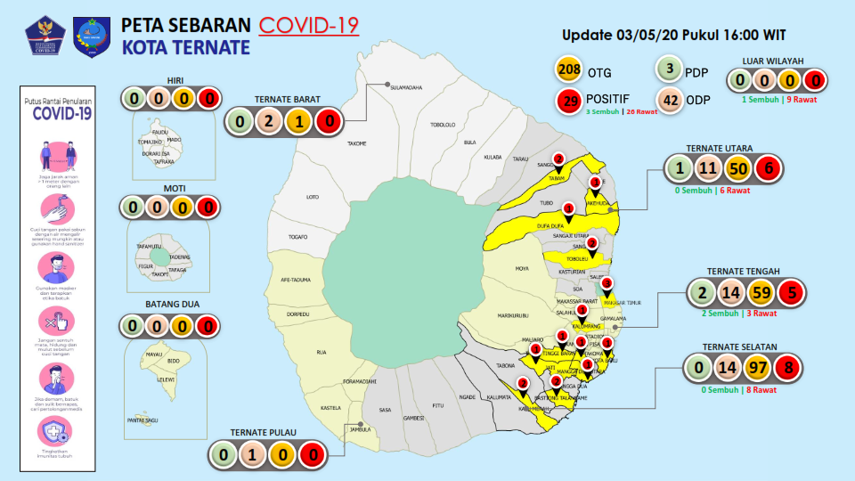 SITUASI KOTA TERNATE TOP_001 Mei 4, 2020 Data sebaran kasus covid-19 di Kota Ternate || Sumber; Gugus Tugas Covid-19 Kota Ternate